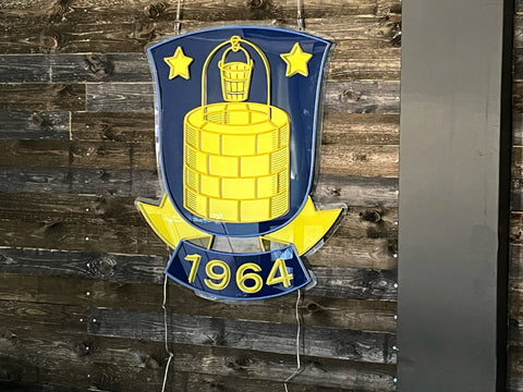 I samarbejde med Brøndby IF kan du nu købe dette lækre håndlavede LED neonskilt med klubbens logo. Skiltet er lavet på en acrylplade som er UV-printet, så skiltet også ser fantastisk ud, når det ikke er tændt. Vi sælger Brøndby-skiltet i samarbejde med Brøndby IF, og en del af salgsprisen går til klubben.